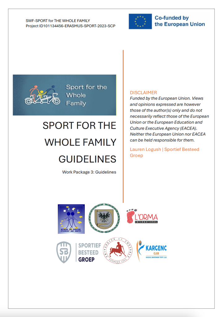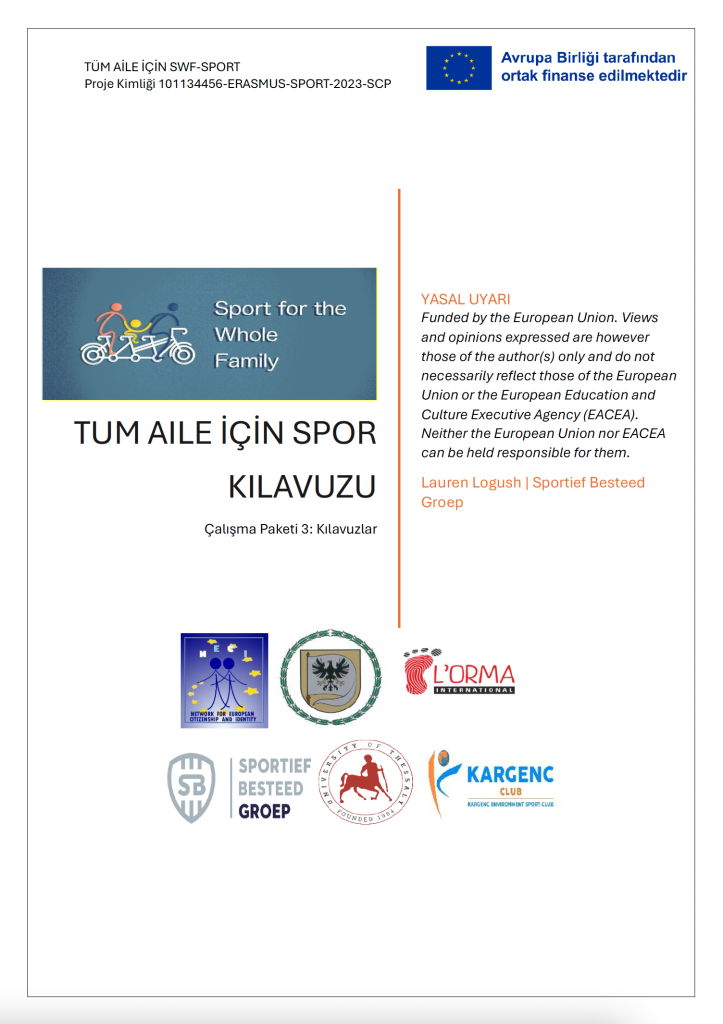 Erasmus+ programı kapsamında yürütülen Sport for the Whole Family (Tüm Aile İçin Spor) projesi sonunda, aile spor aktivitelerinin planlanması ve uygulanmasına yönelik kapsamlı bir Rehber (Guideline) geliştirilmiştir. Bu rehber, proje ortakları tarafından Avrupa’daki iyi uygulamalar, yerel faaliyet deneyimleri ve spor uzmanlarının katkılarıyla hazırlanmıştır. Bu rehber, spor etkinliklerinin katılımcı dostu, erişilebilir ve sürdürülebilir olması için gerekli yöntemleri açık ve adım adım anlatır. Ayrıca, aile içi iletişim ve birlikteliği güçlendirici etkinlik fikirlerini de içerir. 📥 Rehbere erişmek için: Bu rehber, hem yerel uygulayıcılar hem de uluslararası paydaşlar için bir kaynak kitapçığı niteliğindedir ve spor faaliyetlerini daha kapsayıcı hale getirmek isteyen herkes için ücretsiz olarak sunulmuştur. Projemiz kapsamında hazırlanan bu rehberle, aileler için daha fazla spor ve fiziksel aktivite fırsatı yaratmayı amaçlıyoruz.📘 Rehberimizin amacı: